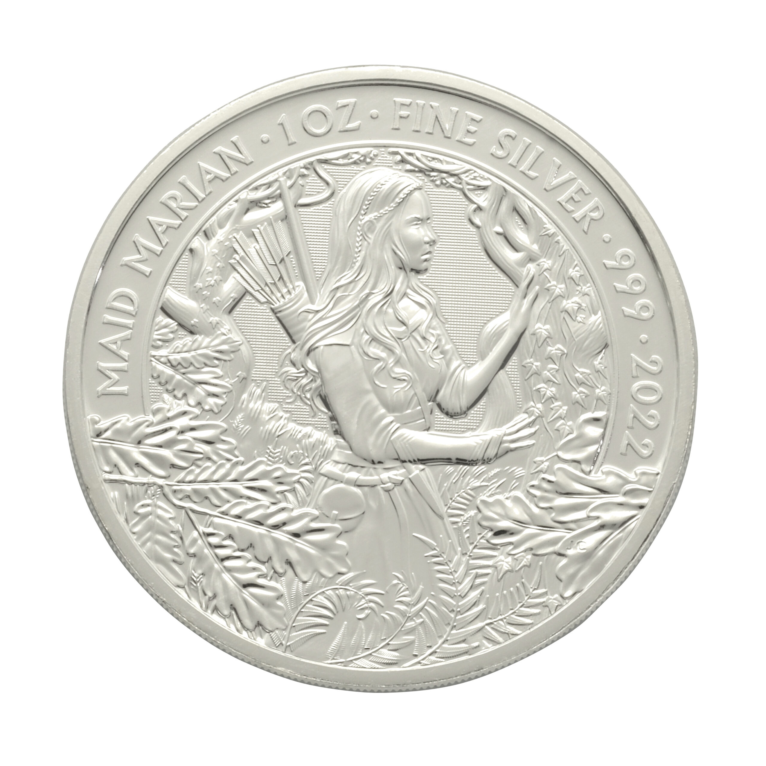 The 2022 Maid Marian 1oz silver coin is part of The Royal Mint’s series celebrating the legendary characters of Robin Hood folklore. This coin was specifically designed to honour Maid Marian, one of the key figures in the Robin Hood legends, alongside Robin himself. The coin features Maid Marian in an elegant yet strong pose, emphasising her beauty, grace and integrity. This coin weighs 1oz (31.1g) and is made up of fine silver (0.999). This coin is perfect for collectors, as it was a limited-edition coin, meaning a finite number were issued. Like other coins, this is also exempt from capital gains tax.