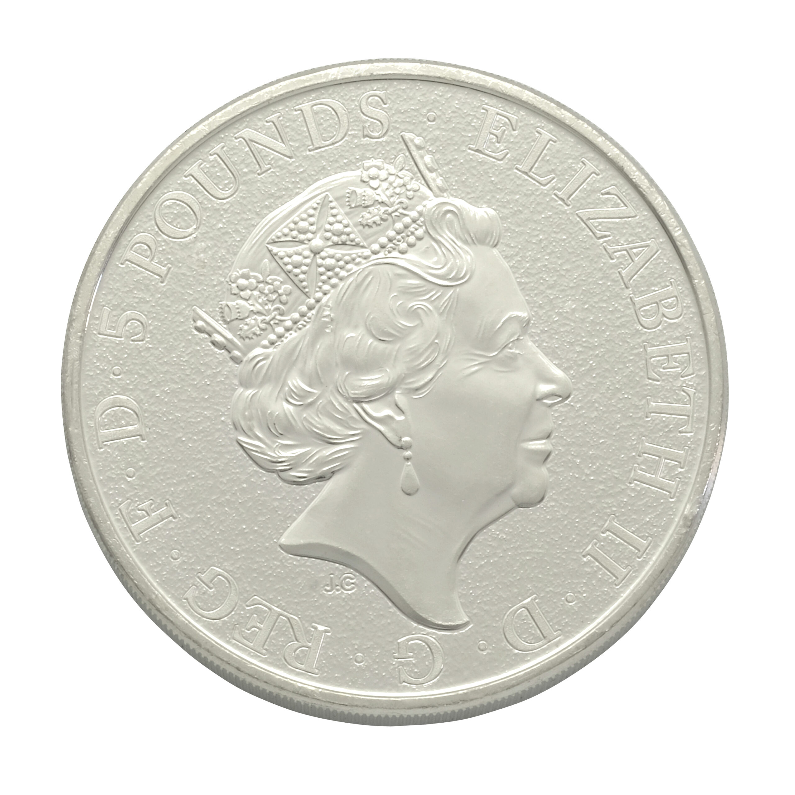 This coin is 0.999 in silver purity and weighs 2oz. It has a face value of £5 and is exempt from any capital gains tax