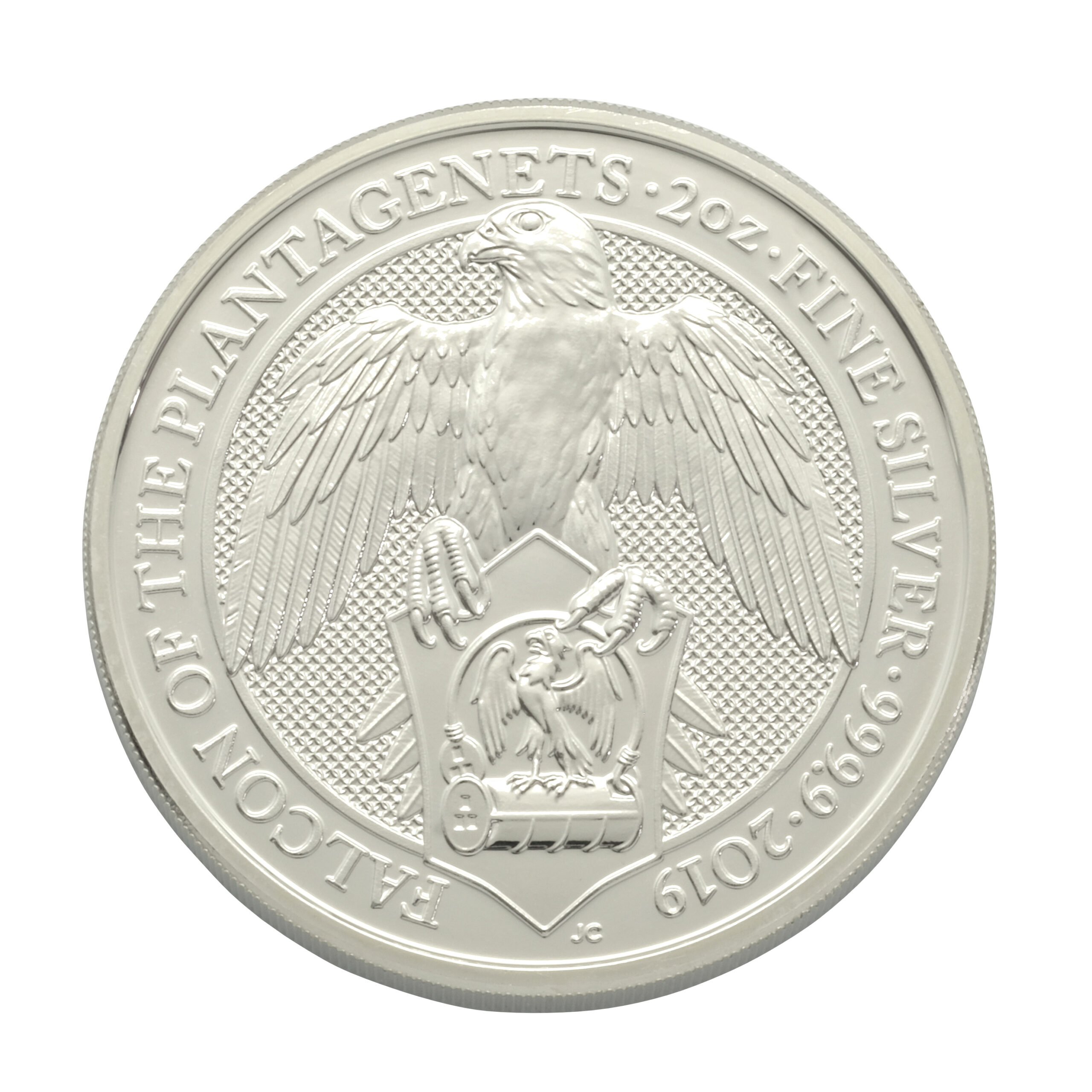 The Falcon Of The Plantagenets is the sixth coin that was released in the Queen’s Beast series produced by the Royal Mint. The falcon and fetterlock emblem originated with Edward III, symbolising his passion for falconry, and was later adopted by his descendant, Edward IV, during the Wars of the Roses. Reverse: Crafted by Jody Clark, it depicts a falcon clutching a shield that bears a smaller white falcon and open fetterlock—signifying the Plantagenet dynasty’s assertive rule